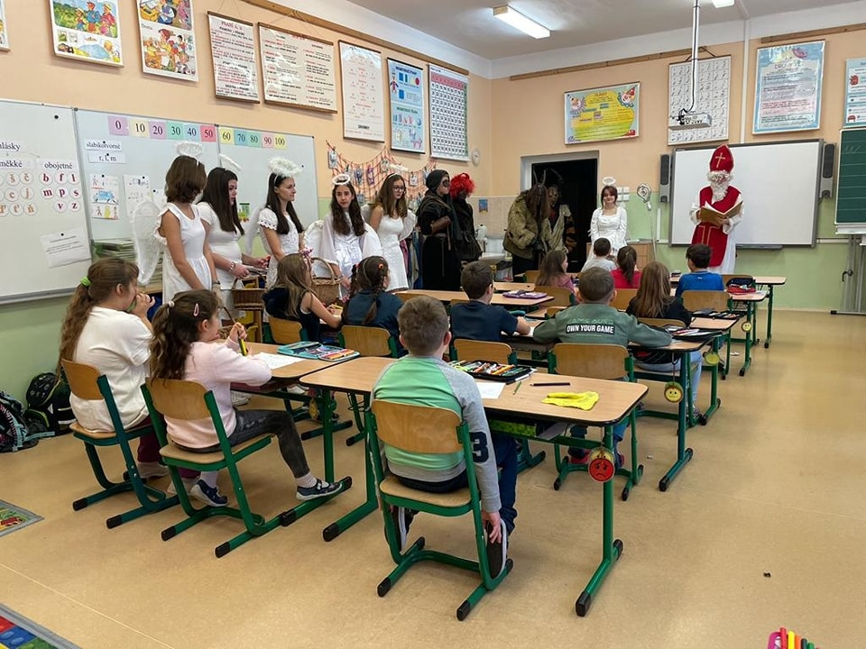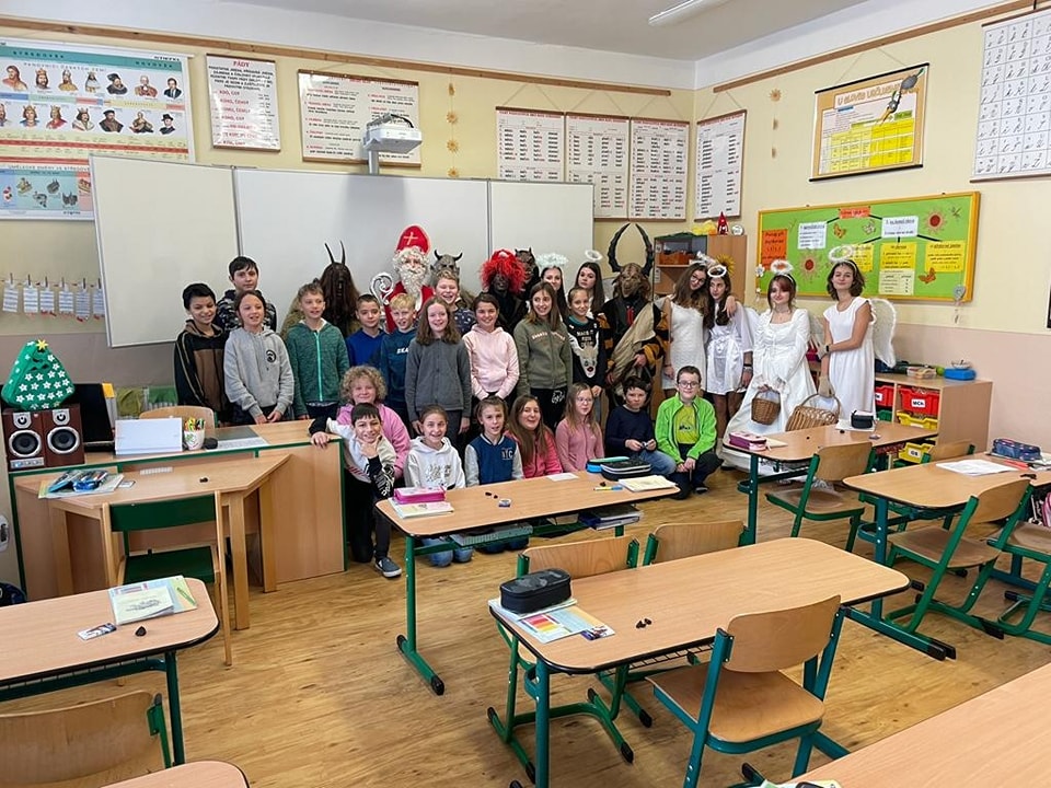 Vypadá to, že máme ve škole zlobivé děti, protože přišli čerti a některé z nich si chtěli odnést do pekla. Naštěstí Mikuláš a andělé vše zachránili a rozdali sladkou dobrotu za básničky v jednotlivých třídách.