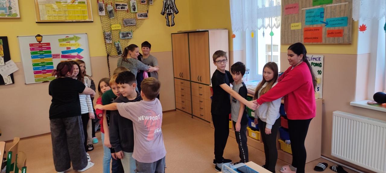 Komunikativní výchova - úkol byl jednoduchý - připravit si hry pro spolužáky. Nakonec jsme si v 5. třídě užili plno smíchu a výborné nálady při hře na "Mekáč" - tvořili jsme hranolky, hamburger, pití a nakonec Happy Meal
