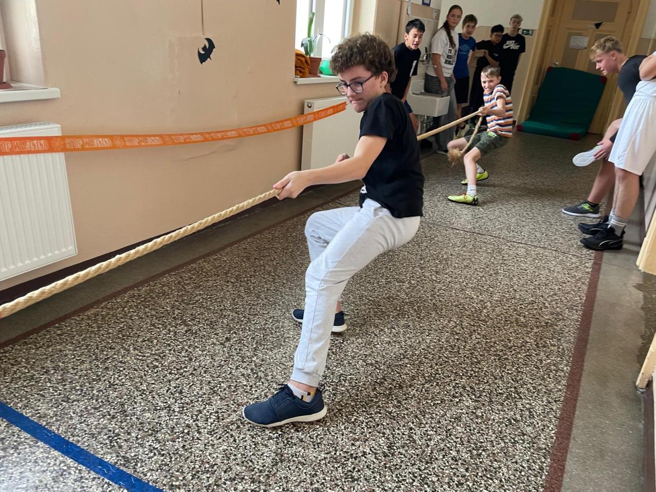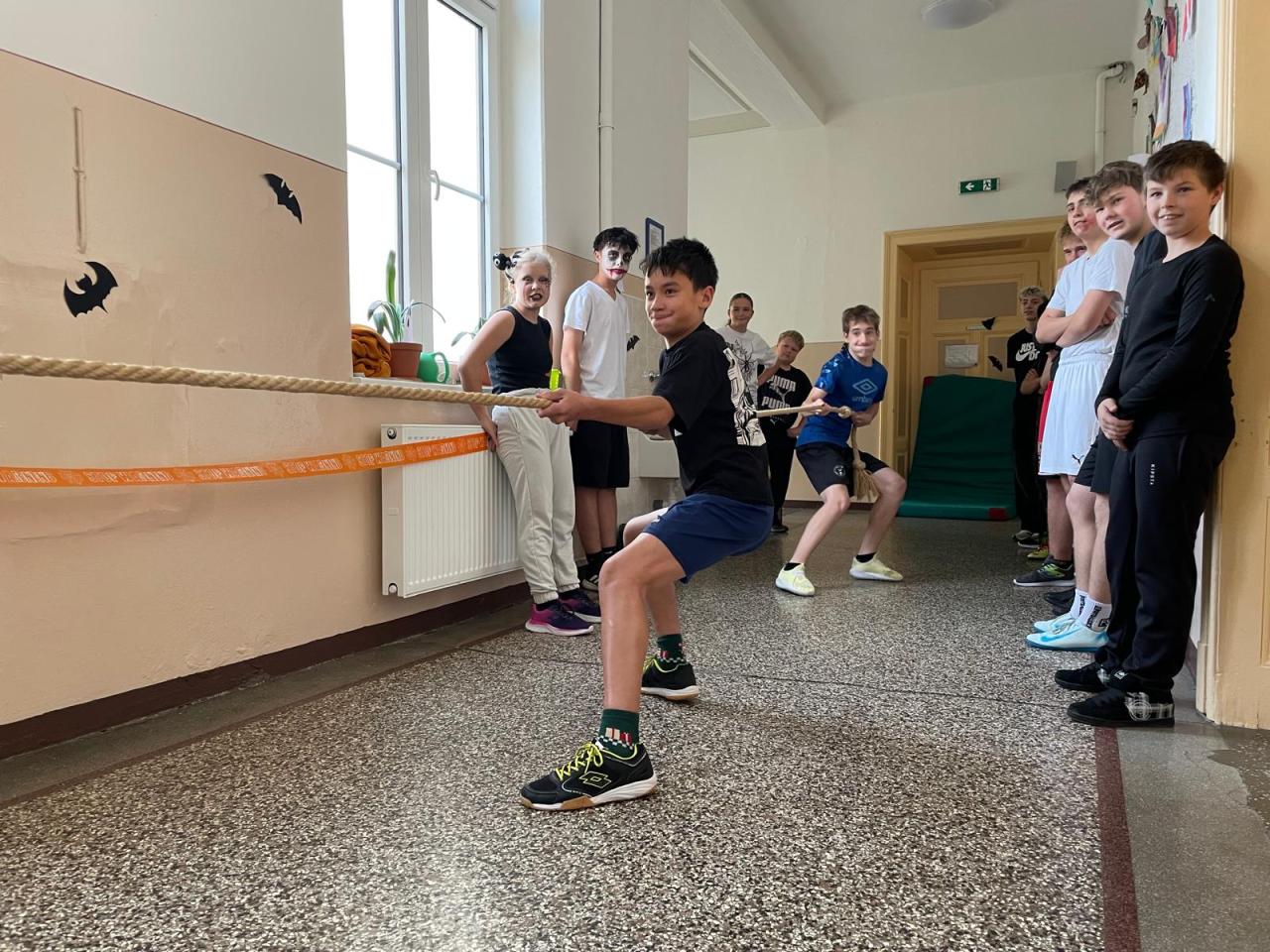 V pátek proběhl na naší škole tradiční souboj siláků v přetahování lanem - bojovalo ze všecz sil 14 dvojic chlapců a děvčat.Panovala výborná atmosféra, nechybělo mohutné povzbuzování a nakonec i předání cen všem zúčastněným.