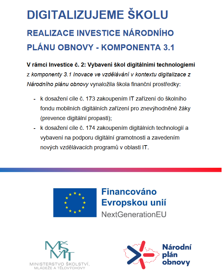 Realizace investice národního plánu obnovy - komponenta 3.1